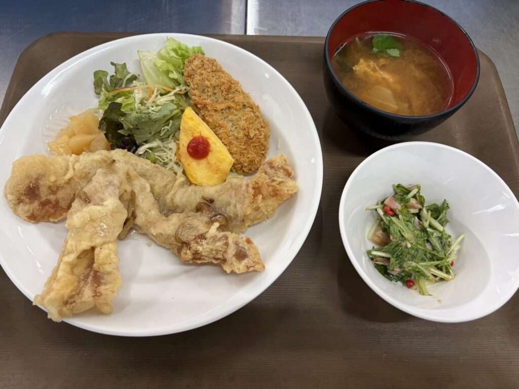 2026 0414 最新情報 本日のメニュー 岐阜県安八郡神戸町で工場給食を提供させていただいております。株式会社イトキューです。今日のメニューです。 定 食 豚天なめこおろしかけ 水菜とベーコンのサラダ お味噌汁 麺 類 みぞれうどん 里芋海苔まぶし グ リ ル 焼うどん目玉焼き 肉じゃが しば漬け お味噌汁 白飯 本日のメニュー 前の記事 本日のメニュー 次の記事