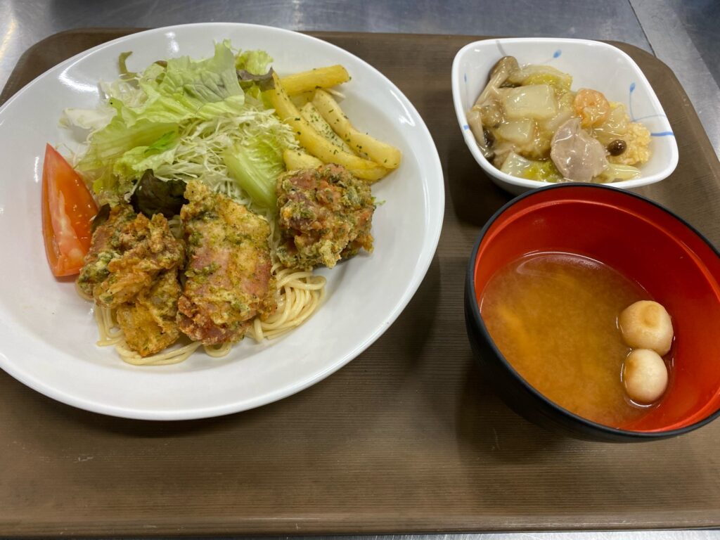 2025 1014 最新情報 本日のメニュー 岐阜県安八郡神戸町で工場給食を提供させていただいております。株式会社イトキューです。今日のメニューです。 定 食 若鶏の磯辺揚げ 自家製海鮮おこげ 白玉麩と大根のお味噌汁 麺 類 天盛そば トマトとミックスビーンズの和え物 グ リ ル すみこの特製ちらし寿司 ハンバーグと串カツ 刻みしそふき 香の物 お味噌汁 本日のメニュー 前の記事 本日のメニュー 次の記事
