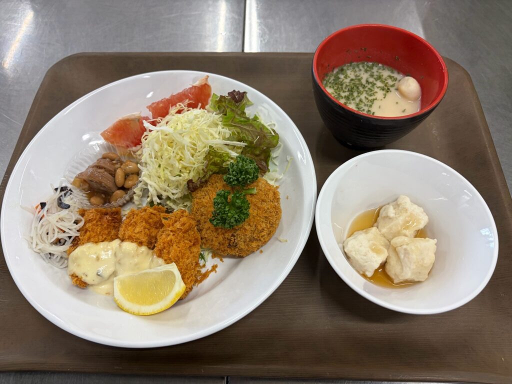 2025 1110 最新情報 本日のメニュー 岐阜県安八郡神戸町で工場給食を提供させていただいております。株式会社イトキューです。今日のメニューです。 定 食 お魚屋さんのカキフライ ふんわり海老入りだんご じゃがいもポタージュ 麺 類 昔ながらの塩中華そば 豆腐田楽 グ リ ル 豚とまガーリック すみこの特製豚汁 煮豆 香の物と白飯 本日のメニュー 前の記事 本日のメニュー 次の記事